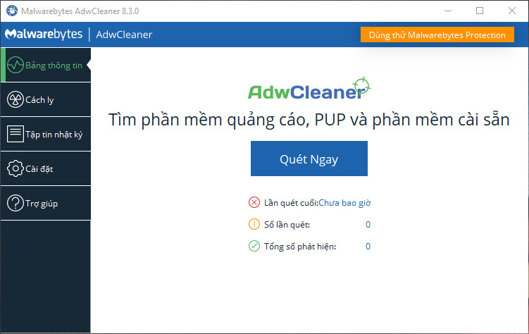 AdwCleaner là một chương trình miễn phí tìm kiếm và xóa sạch các phần mềm quảng cáo, thanh công cụ web, chương trình không mong muốn (PUP), và Hijacker trình duyệt từ máy tính của bạn.